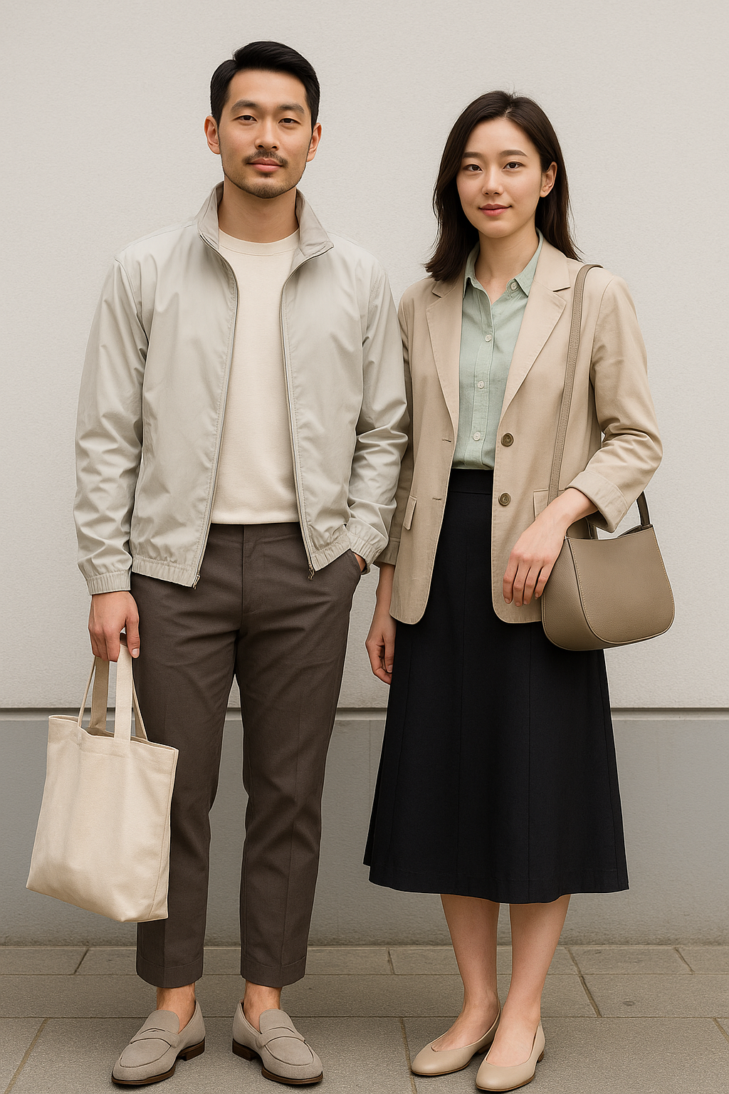 - 아우터: 얇은 트렌치 코트 or 라이트 패브릭 재킷